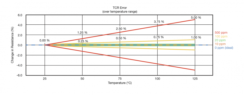 Typically, lithium-ion batteries operate between –30 °C and +85 °C, and accurate current measurements are critical in ensuring the correct state of charge and battery health. These measurements are usually performed using very low ohmic (typically µΩ) current shunt resistors. The specific TCR of the current shunt resistor is a reversible change of resistance as a function of temperature, and is present in all resistors. This change is non-linear, depending on the alloy materials and construction, and the actual TCR ppm varies across this wide temperature range. Taking TCR into account requires characterization across the operating temperature range to ensure accurate current measurements are recorded. In addition, temperature compensation software and circuitry are required to adjust the actual measured results for the purpose of controlling the circuit for charging and discharging.