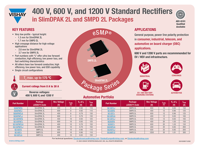400 V, 600 V, and 1200 V Standard Rectifiers