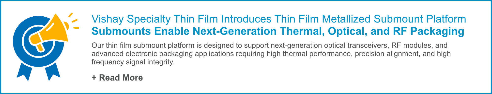 Rising power density, tighter packaging, and minimal alignment margins make submount performance a limiting factor in modern optical modules. Vishay Specialty Thin Film removes these constraints by integrating thermal management, high‑speed signal routing, and precision optical alignment into a single ceramic platform.